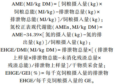 式中:EHGE/DMI指每千克饲粮摄入量的排泄物EHGE;EHGE/GEI指每兆焦饲粮摄入量的排泄物EHGE。