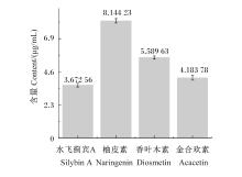 表2 油沙豆中的金合欢素、柚皮素、香叶木素、水飞蓟宾A